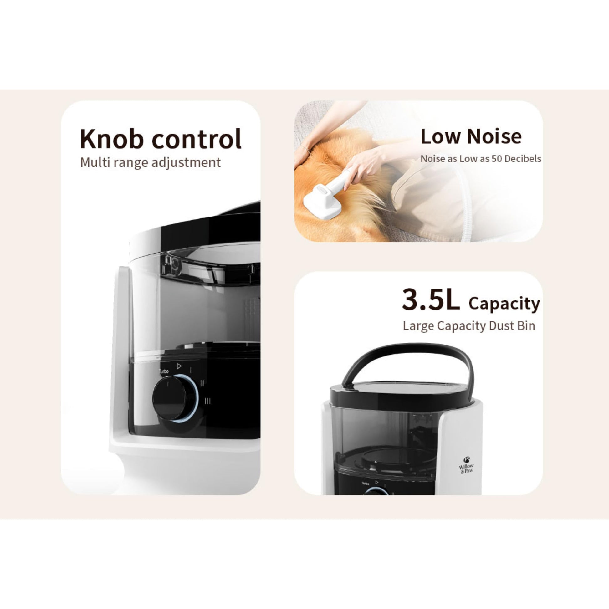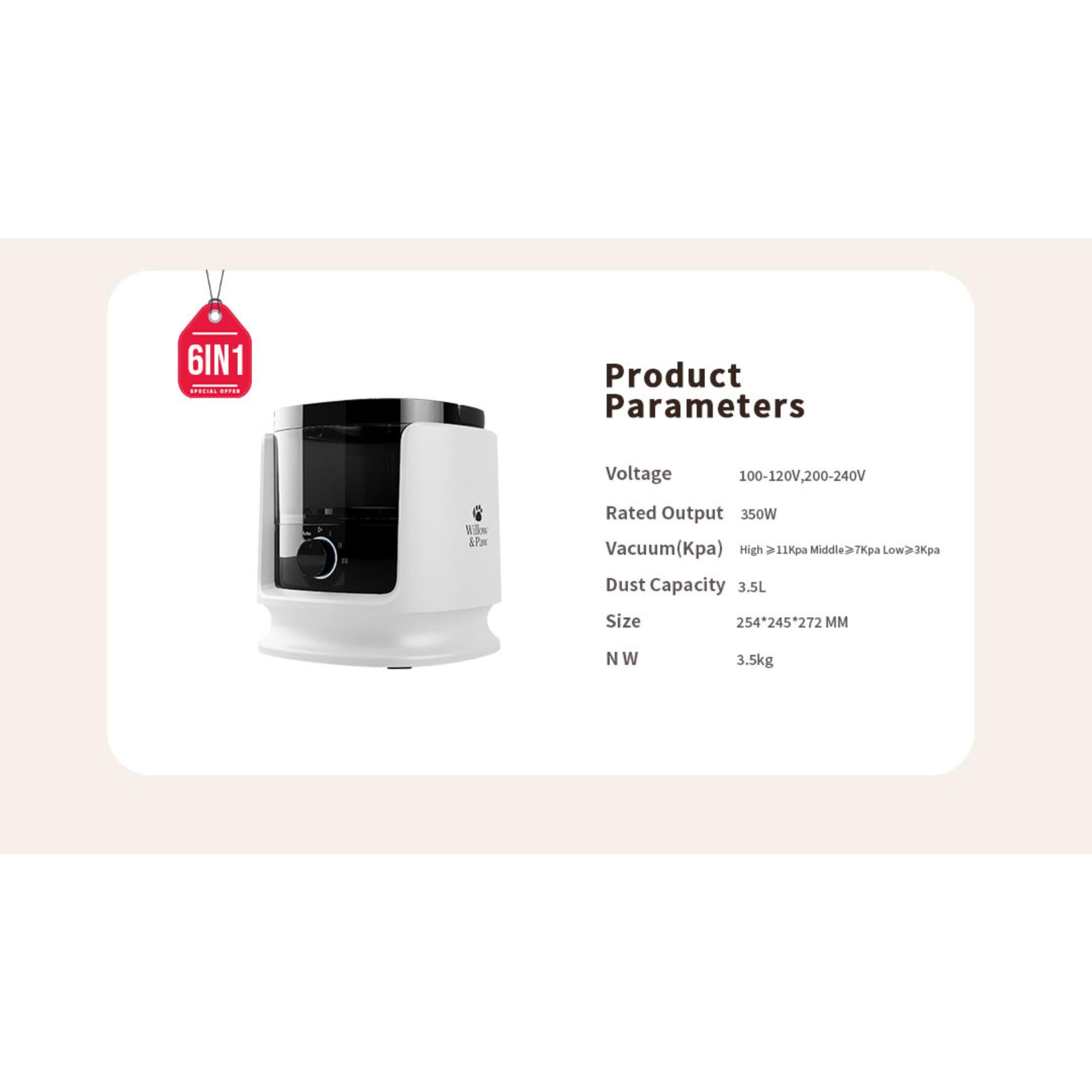 Willow & Paw 6-in-1 Pet Grooming Vacuum Kit, 350W Suction, 3.5L Capacity, Low Noise, with Trimmer, Deshedding Brush, and 6 Combs (3mm-24mm), for Dogs and Cats