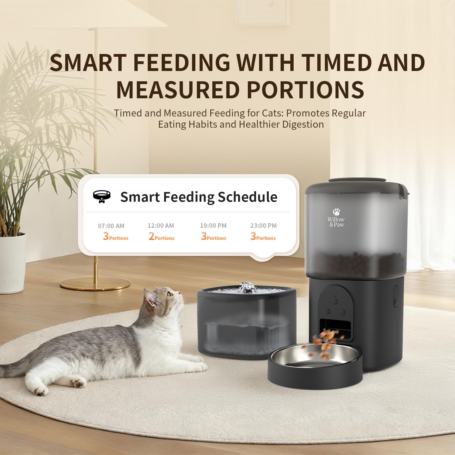 Willow & Paw Automatic Pet Feeder and Water Fountain Set, 4.5L WiFi Smart Food Dispenser with Stainless Steel Bowl, 2.5L Water Dispenser, App Control, Voice Recording