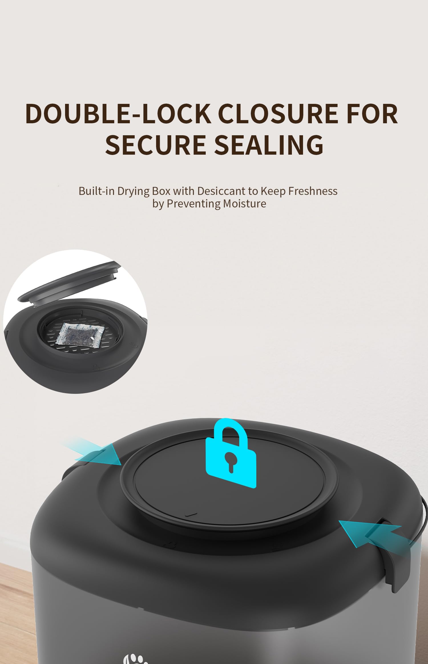 - Freshness Maintained Removable desiccant box in the lid helps keep dry food fresh